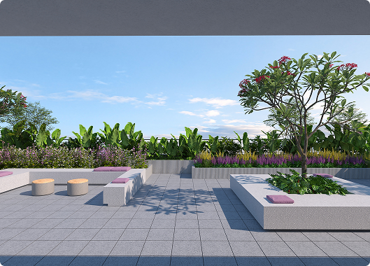 Twilight stands as a modern architectural poem-its warm terracotta facade providing a striking contrast against Bangalore’s azure skies. The building’s distinctive silhouette combines clean geometric lines with organic elements, creating a visual harmony that is both bold and serene.
